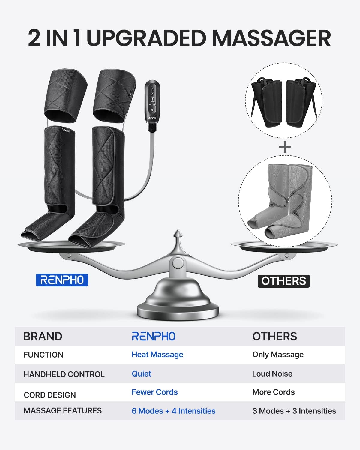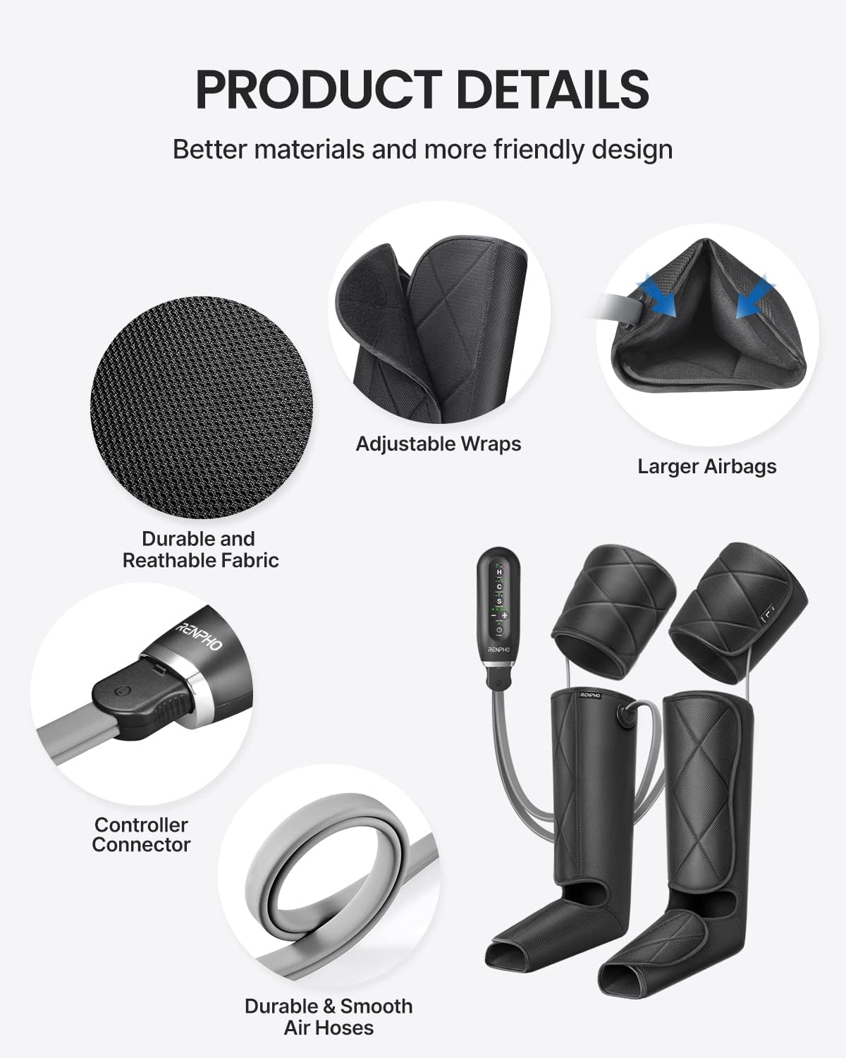 ماساژور پا رنفو RP-ALM079 با 6 حالت ماساژ، 4 سطح شدت و تایمر خودکار 20/25 دقیقه؛ طراحی قابل تنظیم برای کف پا، ساق و ران؛ گزارش وزن حدود 1500 گرم؛ مناسب رفع خستگی و بهبود گردش خون.