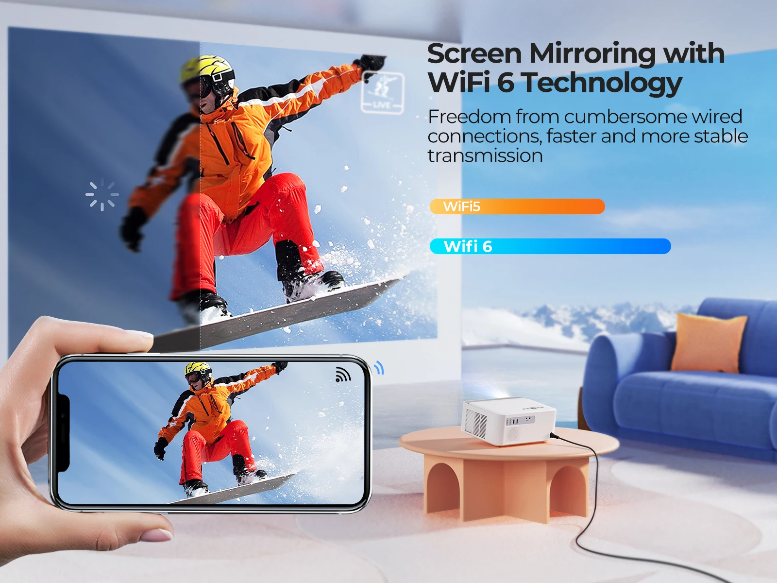 X6 مجهز به پردازنده Hisi 352 و سیستم اندروید است که امکان نصب اپلیکیشنها و پخش محتوا بدون نیاز به دانگل خارجی را میدهد. از امکانات کاربری شاخص باید به فوکوس برقی، تصحیح کیستون چهارطرفه و قابلیت نمایش بیسیم (Miracast و EShare) اشاره کرد که راهاندازی و جابجایی پروژه را ساده میکنند. همچنین دستگاه پورتهای HDMI دو عدد، USB دو عدد، درگاه AV و خروجی هدفون دارد و بلوتوث و وایفای برای اتصال به بلندگوها یا شبکه داخلی فراهم است. این ویژگیها نصب و بهرهبرداری را برای کاربران روزمره آسان میسازد.