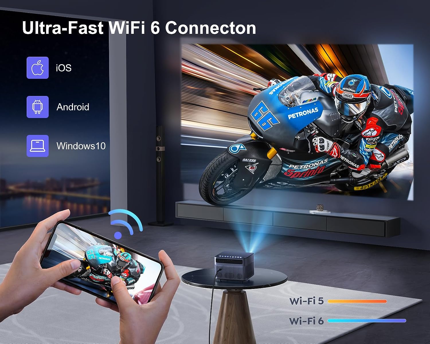 وجود فوکوس خودکار و اصلاح کیستون الکترونیکی/خودکار 6D، راهاندازی دستگاه را بسیار ساده میکند؛ کافیست دستگاه را در نزدیکی مرکز یا با زاویه حداکثر حدود 20 درجه قرار دهید تا سیستم خودکار تصویر را صاف و شارپ کند. ویژگی 50% زوم امکان کوچک کردن تصویر تا نصف بدون جابهجایی دستگاه را میدهد که در فضاهای کوچک مفید است.